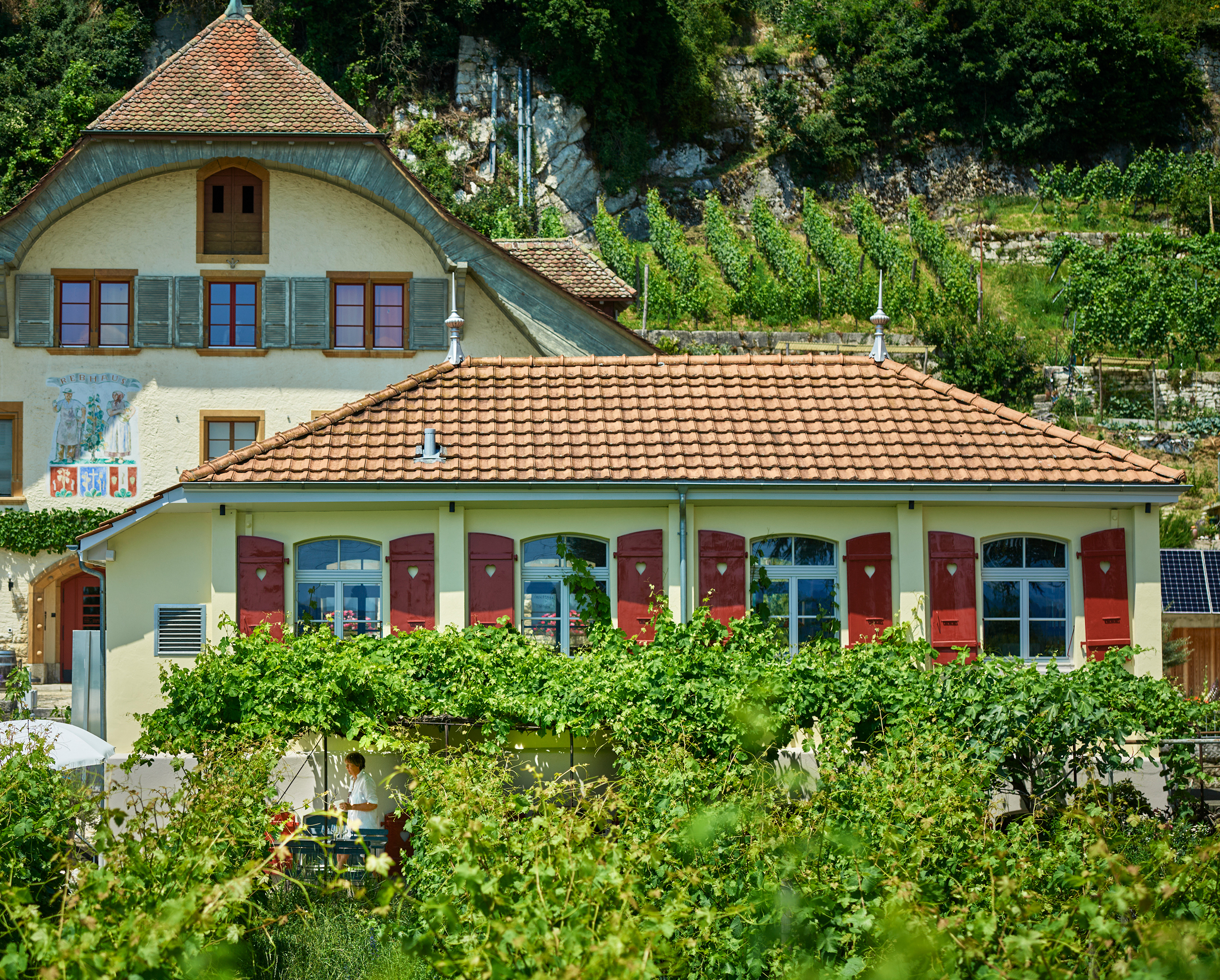 Die lauschige Pergola mit dem über 100-jährigen Rebstock „Bois de Dieux“ lädt an heissen Tagen zum Verweilen ein. Ein Glas Bielerseewein und ein köstliches Winzerplättchen sollen unseren Gästen ein zufriedenes Lächeln auf das Gesicht zaubern.